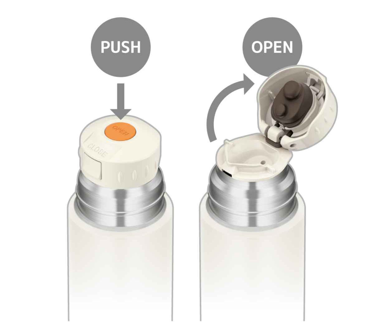 漏れずに安心ワンプッシュでオープンする使いやすい中せんです。カチっと閉まる構造のため、漏れずに安心してお使いいただけます。