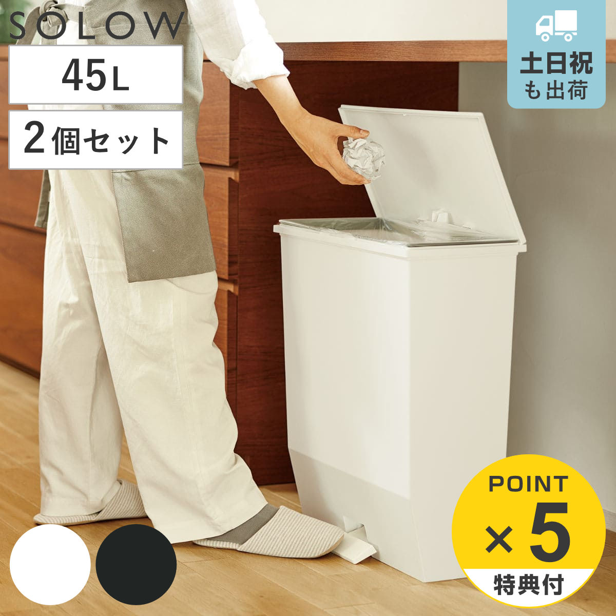 特典付き ゴミ箱 45L 同色2個セット SOLOW ソロウ ペダルオープンワイド ( ごみ箱 45リットル ペダル式 ふた付き 棚下 奥行23 )