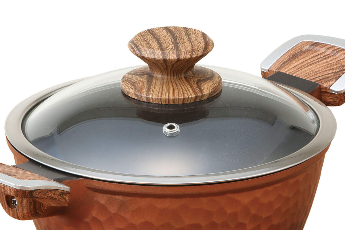 見た目と実用性を兼ね備えた両手鍋槌目デザインとグラデーションブロンズカラーの高級感ある片手鍋です。槌目加工にすることで表面積が増えるため、熱伝導率が良くなります。ガス火はもちろん、IHにも対応しているので場所を選びません。