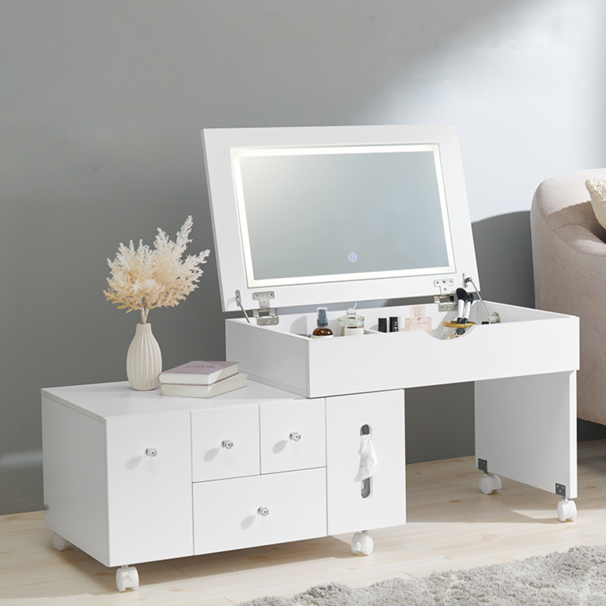 | ストッパー付きキャスター 移動がラクにできるキャスター付きです。ストッパーが付いているので固定もできて安心です。 | お手入れ簡単 水や汚れに強いメラミン加工が施されています。サッと拭くだけでお手入れ簡単です。 |