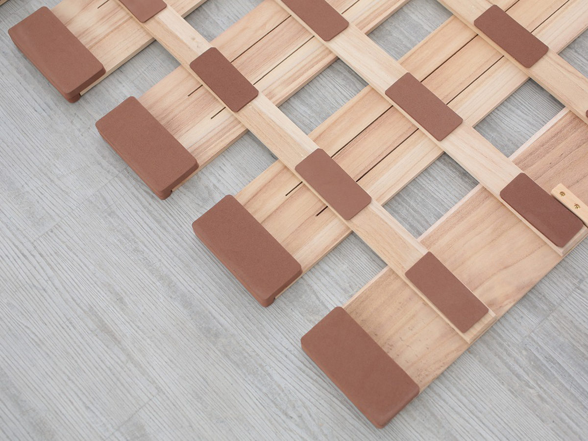 | 材質 | 本体:天然木(桐) 脚部:EVA樹脂 支持桟:ポプラ積層合板、パイン材 ローラー:ポリプロピレン |
