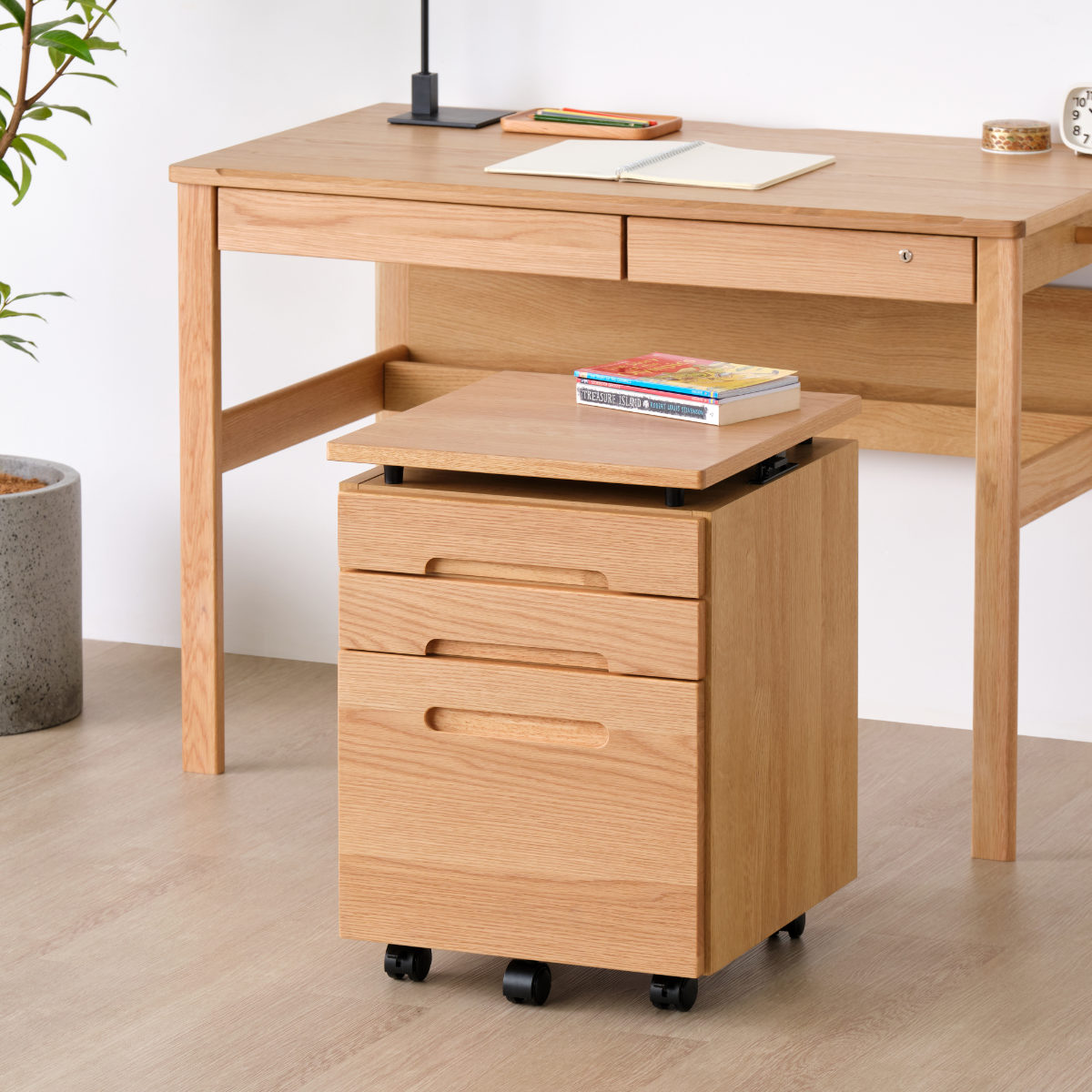 木目が美しい北欧テイストの昇降サイドワゴンです。増えていく学習アイテムをひとまとめに収納できます。全体的に丸みがありぬくもりを感じられるデザインは、どんなお部屋にすっきりと馴染みます。