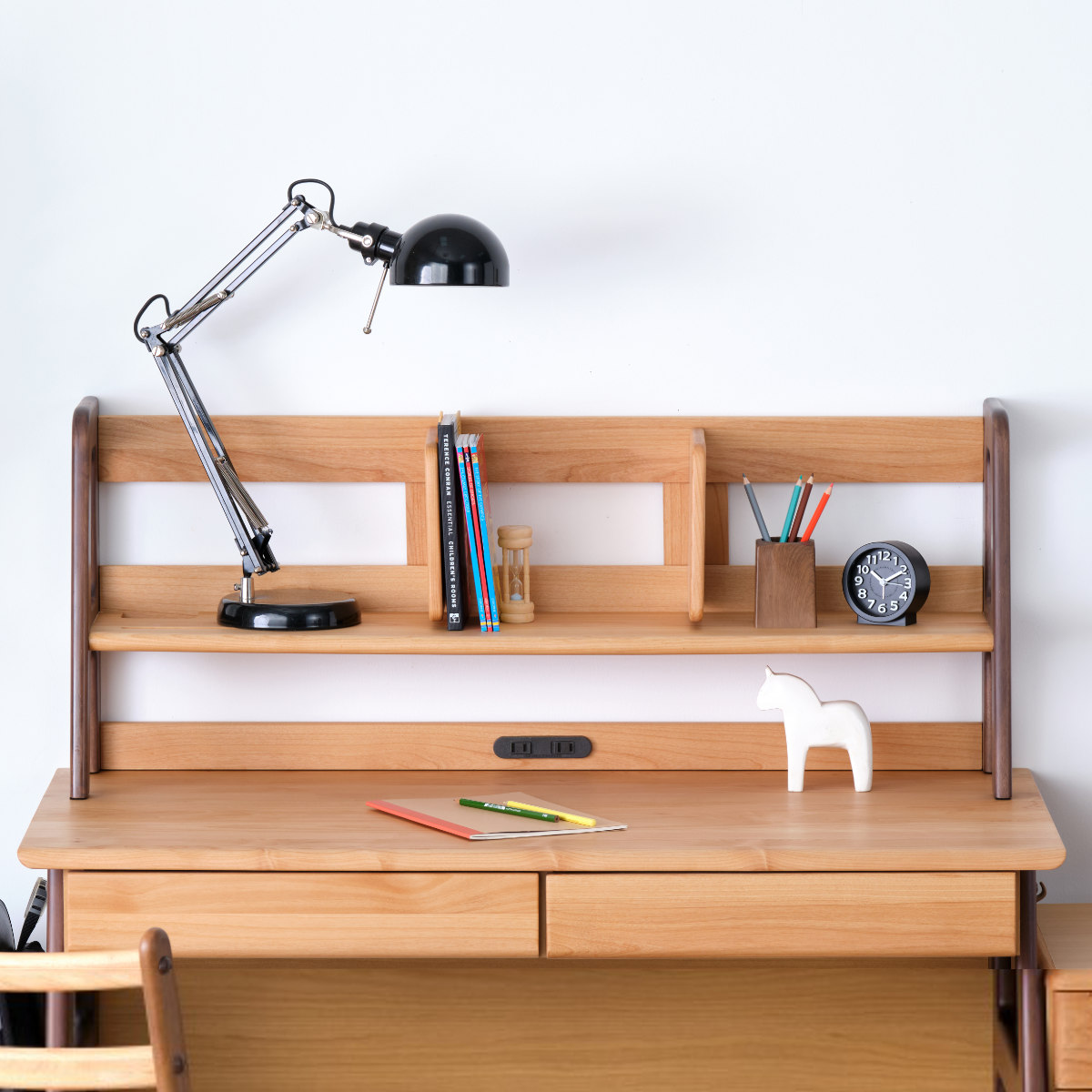 アルダーとラバーウッドを使用したツートーンカラーが個性的なECTOシリーズのデスク用上棚です。余分な装飾を省いたすっきりとしたデザインで、性別や年齢を問わず小学生から大人まで長くお使い頂けます。
