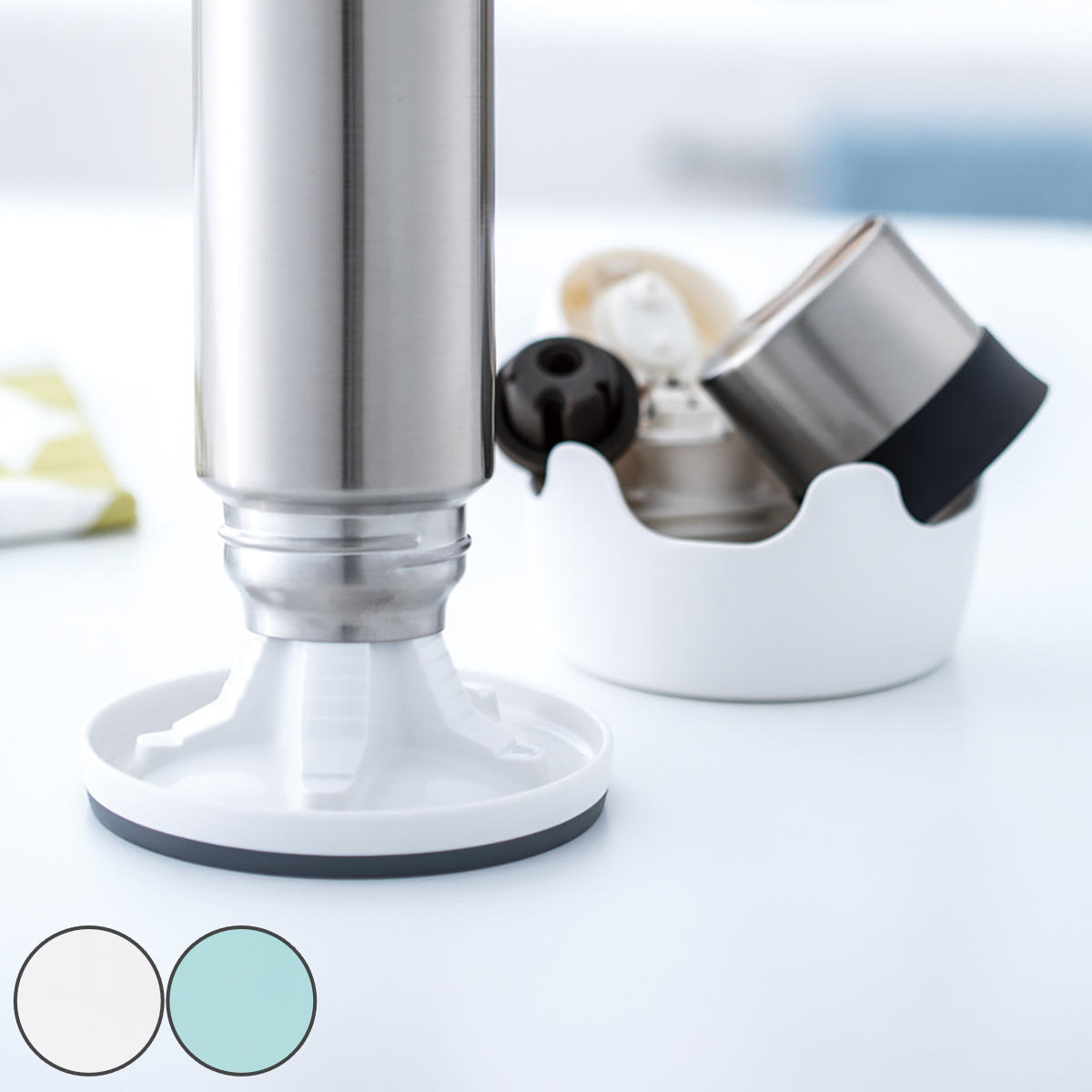 水切りラック ボトルホルダー 立て ベビーマグ コップ 水筒 乾燥 抗菌加工 白 ホワイト ミントブルー おすすめ オススメ おしゃれ 便利 新生活 人気 引越し祝い 新築祝い 水まわり用品 水回り用品 キッチン収納 キッチン雑貨 キッチン用品 台所用品 キッチングッズ 水切りトレイ 水筒ラック シンク回り シンク周り 食器立て 洗い物 LH2499