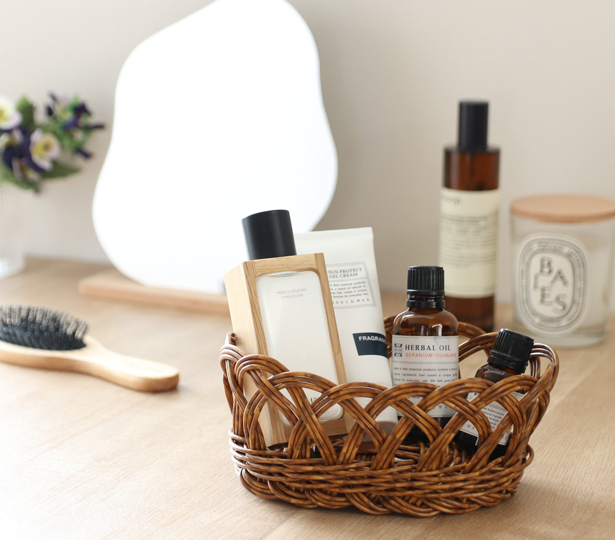 スペースを無駄にしないオーバル型ざっくりと物を入れても様になるオーバル型のバスケットは、縦置きでも横置きでも場所に合わせて収納できるのでスペースが無駄になりません。