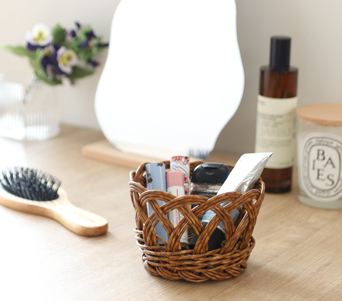 ナチュラルテストなお部屋にぴったり天然素材を使用しているように見えるバスケットは、ナチュラルな雰囲気のお部屋にぴったりのデザインです。水に強いのでキッチンやバスルームでも安心してお使いいただけます。家中の様々な場所で活躍してくれる見た目と機能性にこだわった手編みバスケットです。