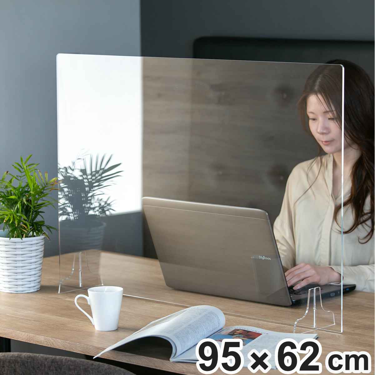 アクリルパーテーション オフィス 接客 受付 飲食店 飛散防止 感染防止 対面 コミュニケーション 医療機関 病院 会社 安定 スタンド 角丸 クリア 仕切り板 仕切板 パネル コロナ対策 学校 塾 幼稚園 保育園 老人ホーム クリニック レストラン 事務所 間仕切り 幅95 奥行16 高さ62 cm センチ 店舗 LH12887 LH11925