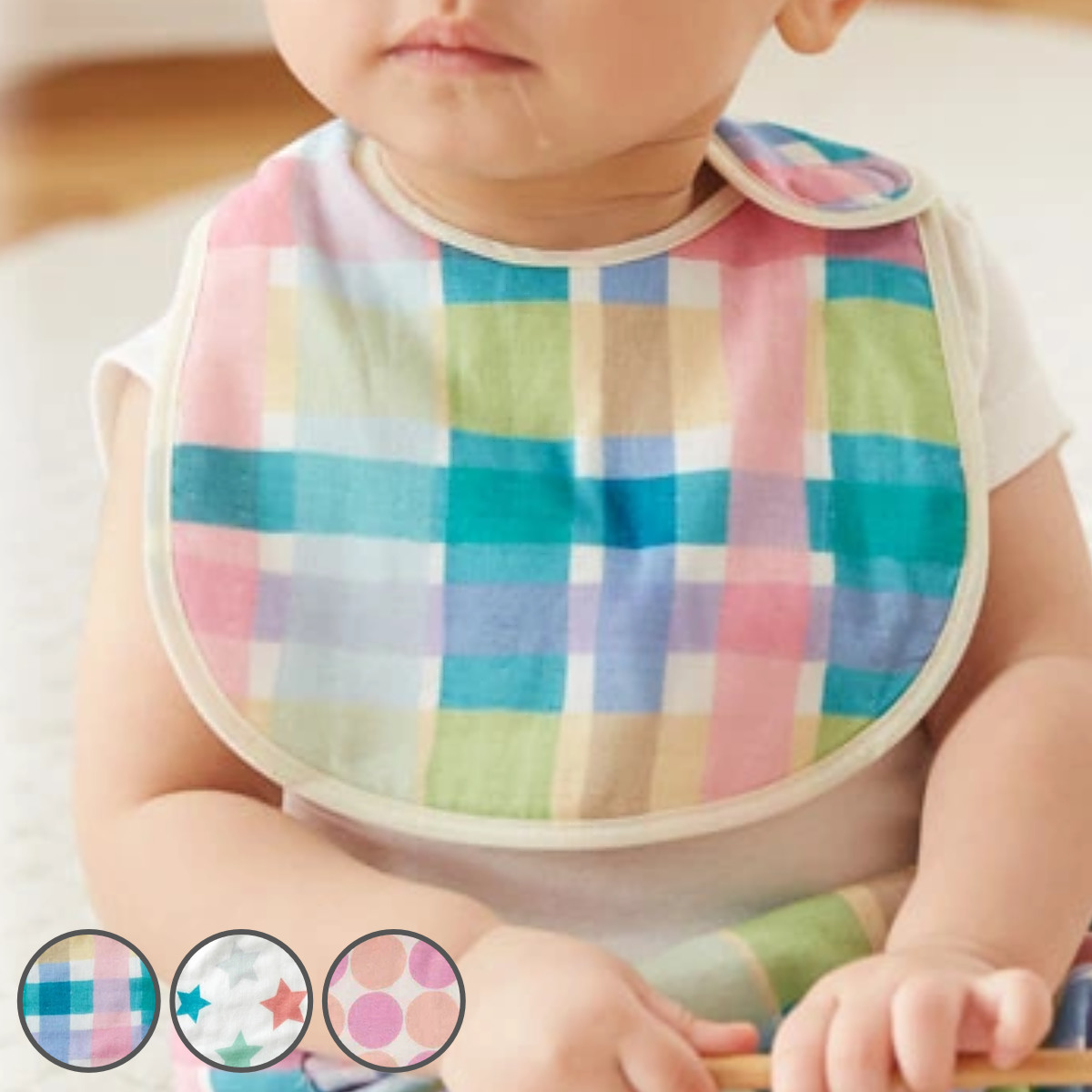 優しいガーゼ素材でできた日本製スタイ0歳から使えるフリーサイズのスタイです。食べこぼしなどで洋服を汚しにくい、少し大き目のサイズです。ガーゼとパイル生地で肌触りが良く、快適にお使いただけます。