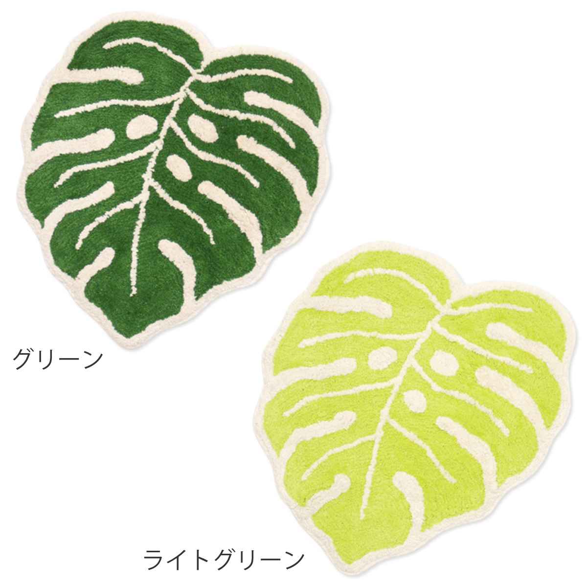 お部屋にトロピカルなアクセントをプラス●モンステラをかたどった爽やかなデザインのマットです。