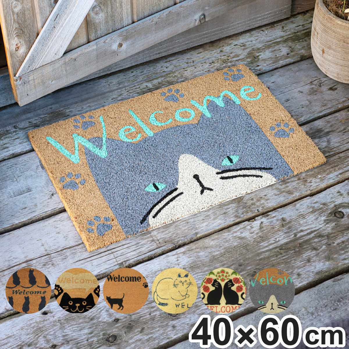 玄関マット 屋外 泥落とし 40×60cm コイヤー ネコ ( 玄関 マット 屋内 ドアマット 滑り止め コイヤーマット 長方形 厚さ1.5cm )