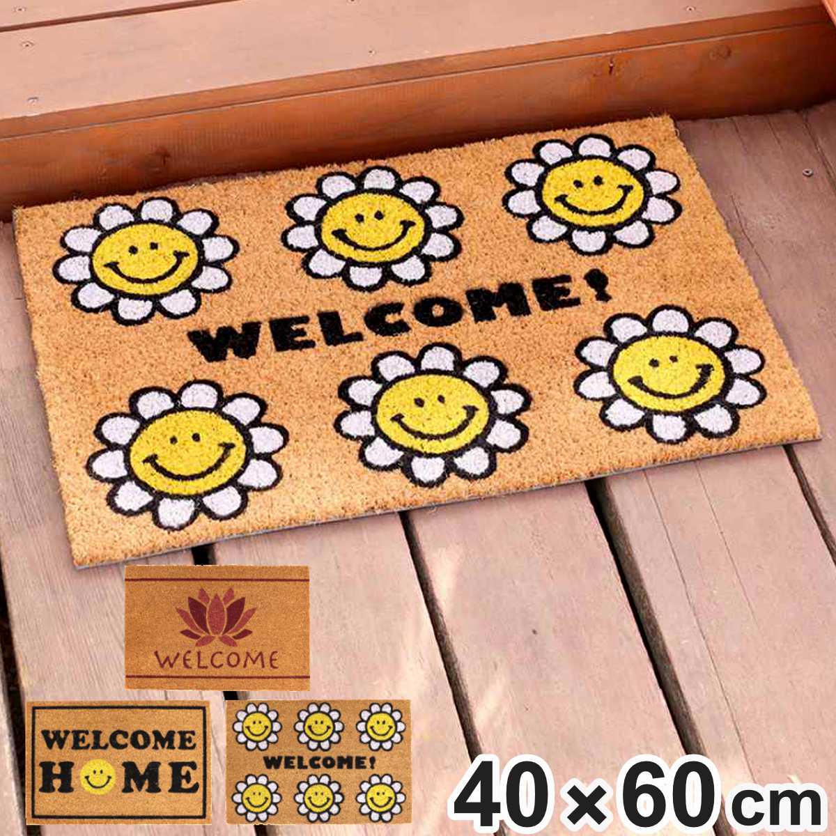 可愛いデザインの玄関マット 屋外兼用 40×60cmココナツ繊維がふんだんに使われた玄関マットです。水はけが良く、靴の汚れもしっかりキャッチし、天然素材ならではの耐久性と実用性が魅力です。スマイル柄や蓮の花の模様が施されており、玄関やベランダをパッと明るい雰囲気にし、訪れる人にも温かい印象を与えます。毎日の生活を彩る、機能性とデザイン性を兼ね備えたアイテムです。