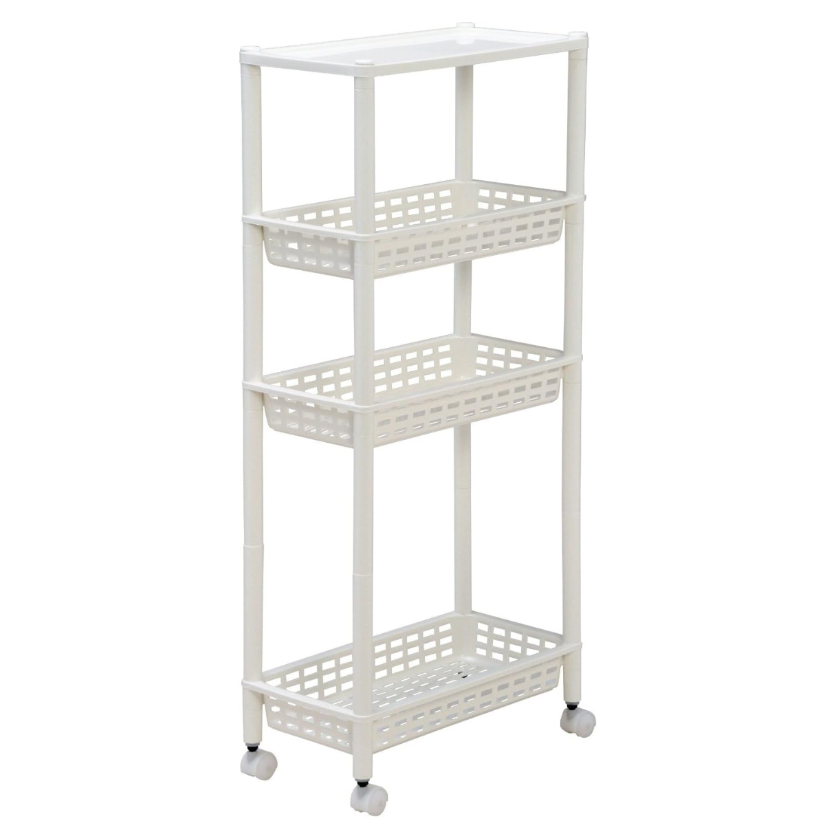 省スペースですっきり収納散らかる小物やストック類などをすっきりと整頓できる、樹脂製の4段ワゴンです。軽量シンプルで小回りのきくスリムワゴンなので、キッチンや洗面所などの狭い空間でも使いやすく、ちょっとした隙間にもフィットしスペースを有効活用できます。