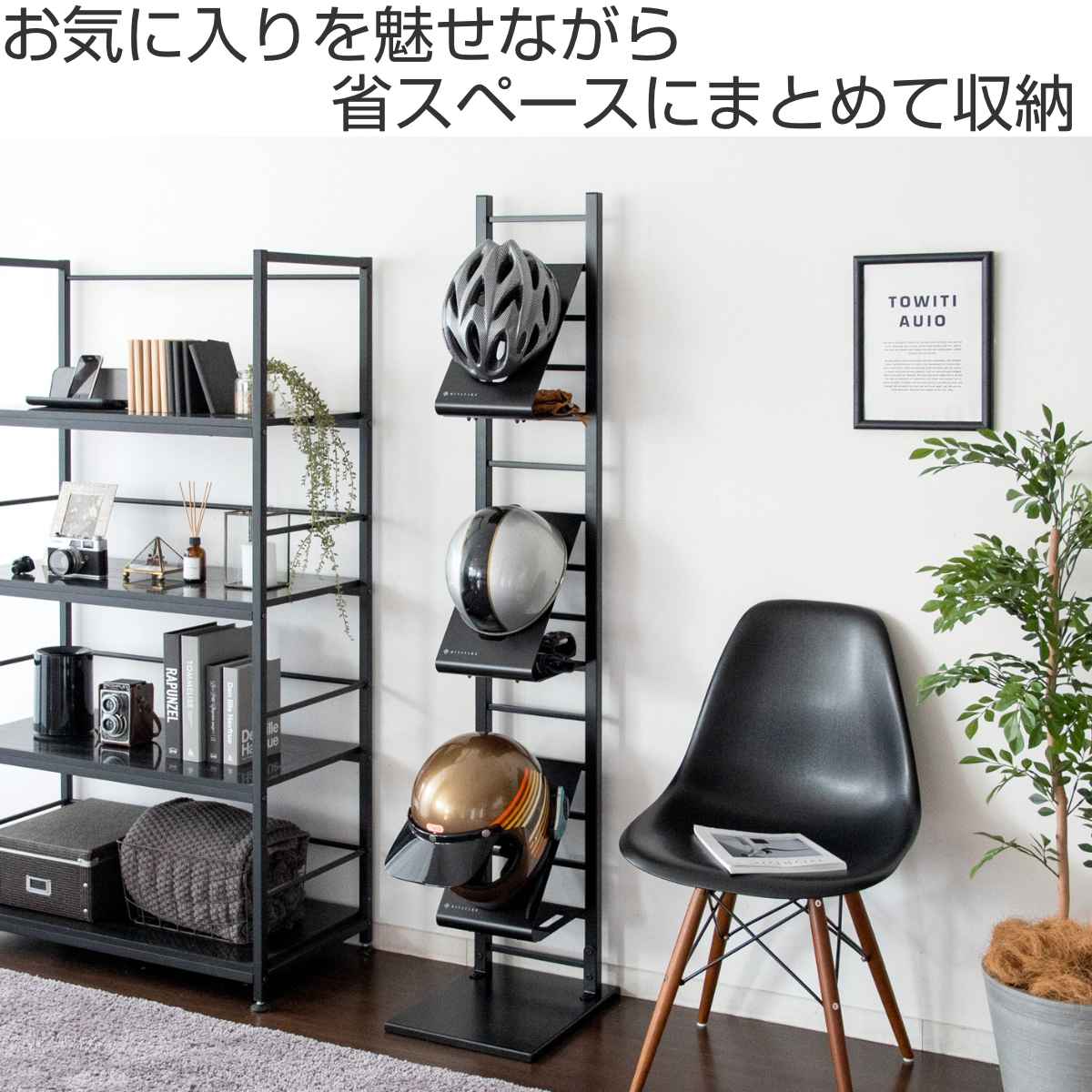 お気に入りのヘルメットを魅せながら省スペースに収納できるヘルメットスタンド「GALEA(ガレア)」です。