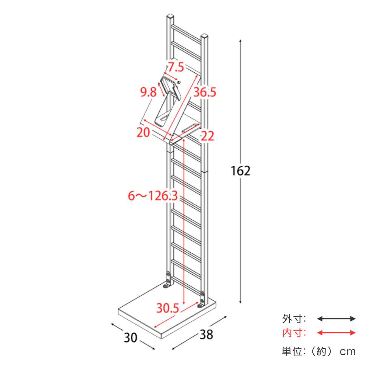 サイズ/約幅30×奥行38×高さ162cm