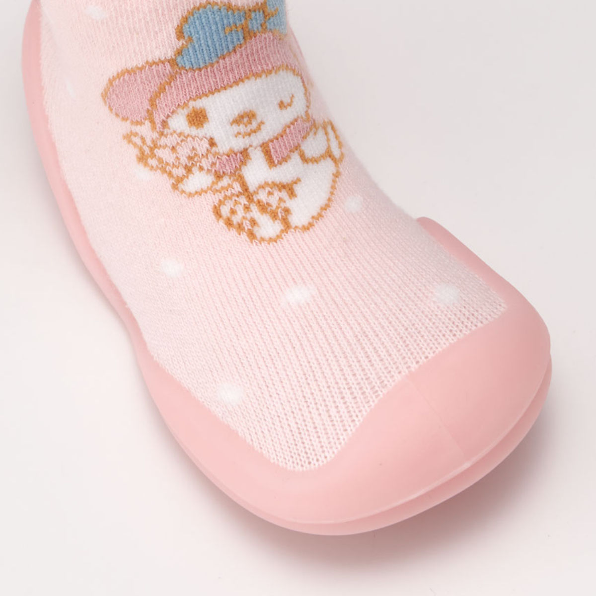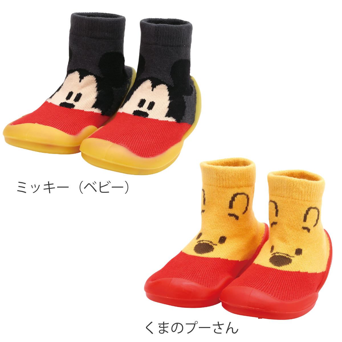 ●シューズの上部は靴下のように柔らかく伸縮性があり、赤ちゃんの足に優しくフィットします。