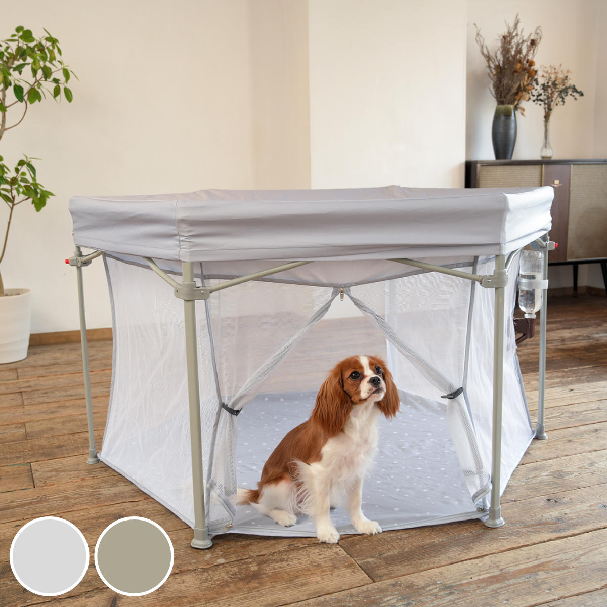ぱっと広げて快適空間 折りたたみ式ペットサークル 室内用メッシュ生地で通気性の良い室内用ペットサークルです。ぱっと広げるだけで簡単に組み立てられ、使わない時は折りたたんでコンパクトに収納できます。約6.5kgと軽量設計なので掃除の際に持ち上げたり移動がしやすく、来客時やお留守番の時など便利にお使いいただけます。