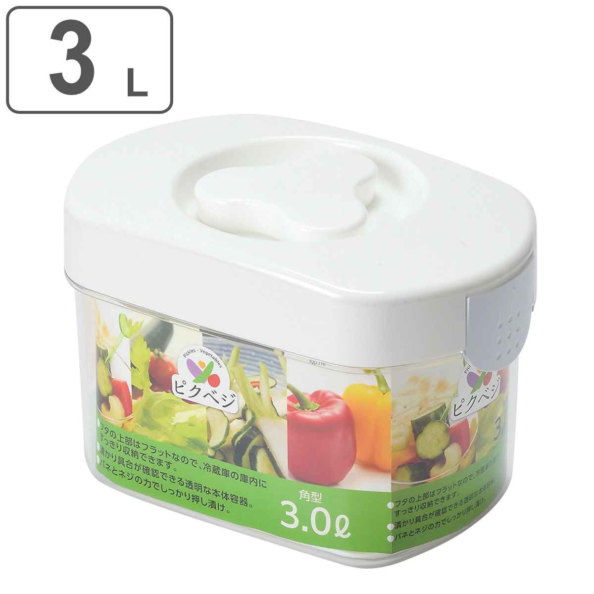 漬物容器 3L ピクベジ 角型漬物器 ( 漬物器 漬物桶 漬け物容器 つけもの器 漬物 漬け物 プラスチック 日本製 レシピ付き )