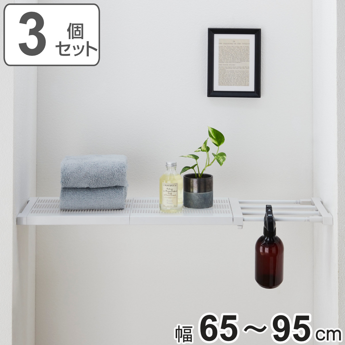つっぱり棚 3個セット 突っ張り棚27M 取付寸法65〜95cm メッシュ ( ツッパリ つっぱり 棚 収納 伸縮棚 ラック トイレ 洗面所 玄関 小物置き 靴置き )