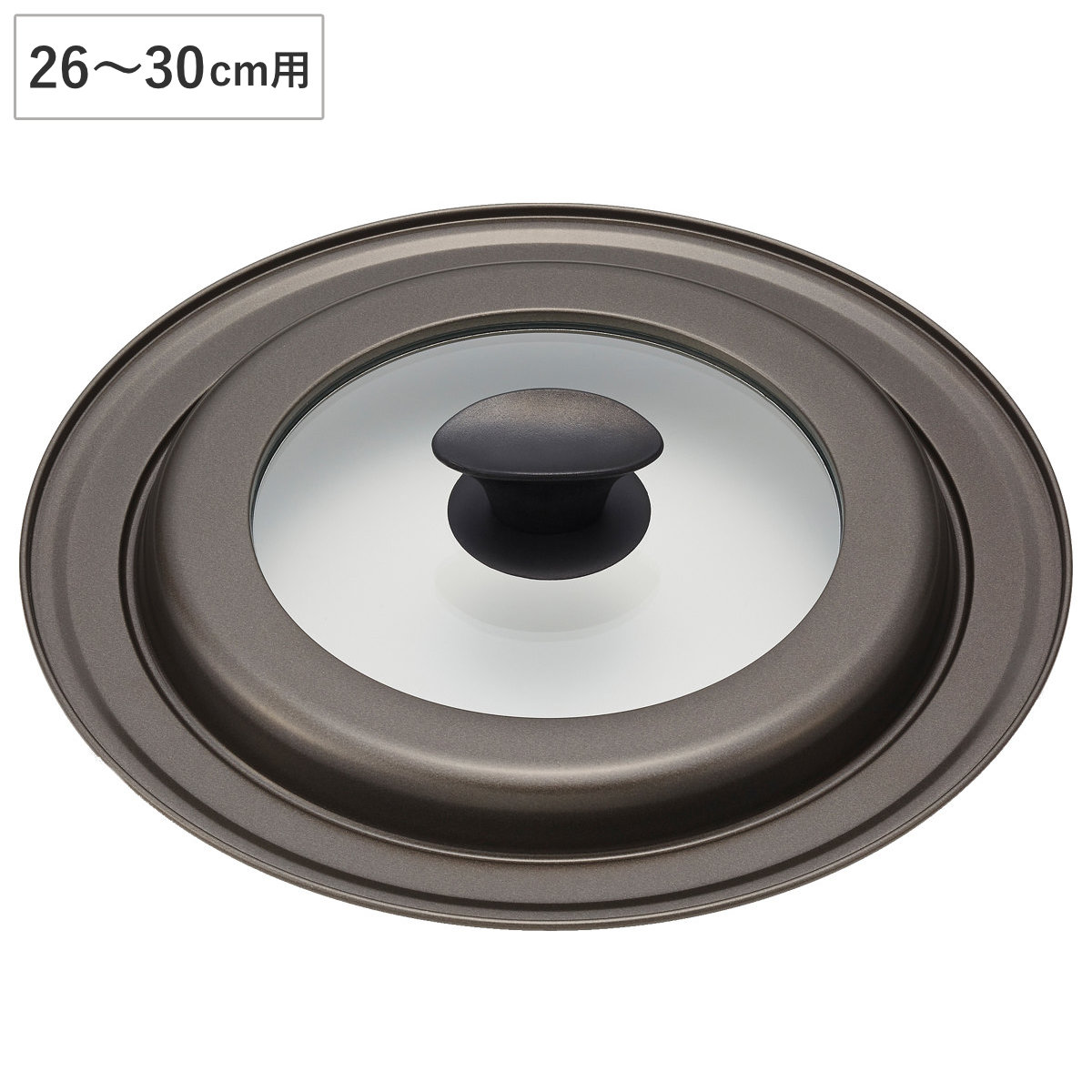 調理中の様子が見えやすいガラス窓付きパンカバー●サビにくく、耐久性に優れたフライパンの蓋26〜30cmです。