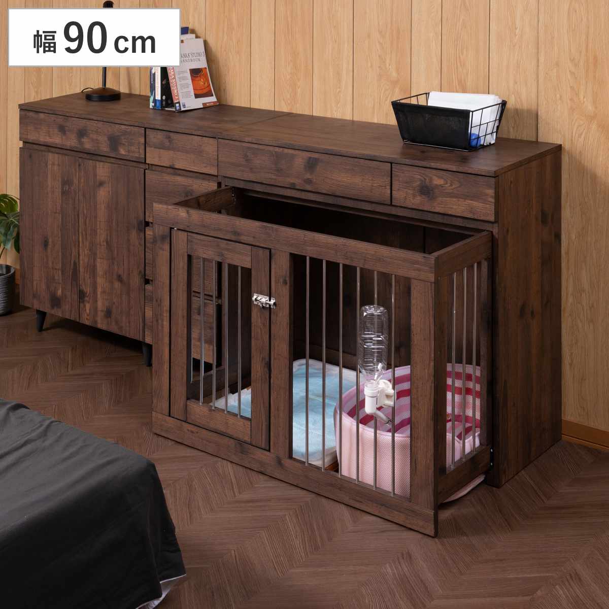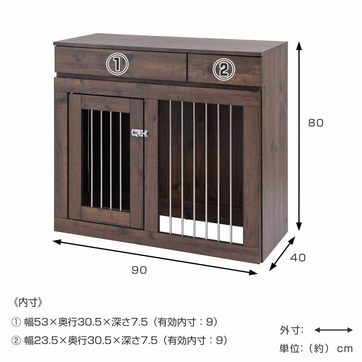 ペットケージ 幅90cm キャビネット ヴィンテージ調 Arizona ( アリゾナ ペット家具 ケージ 家具 収納 引き出し )