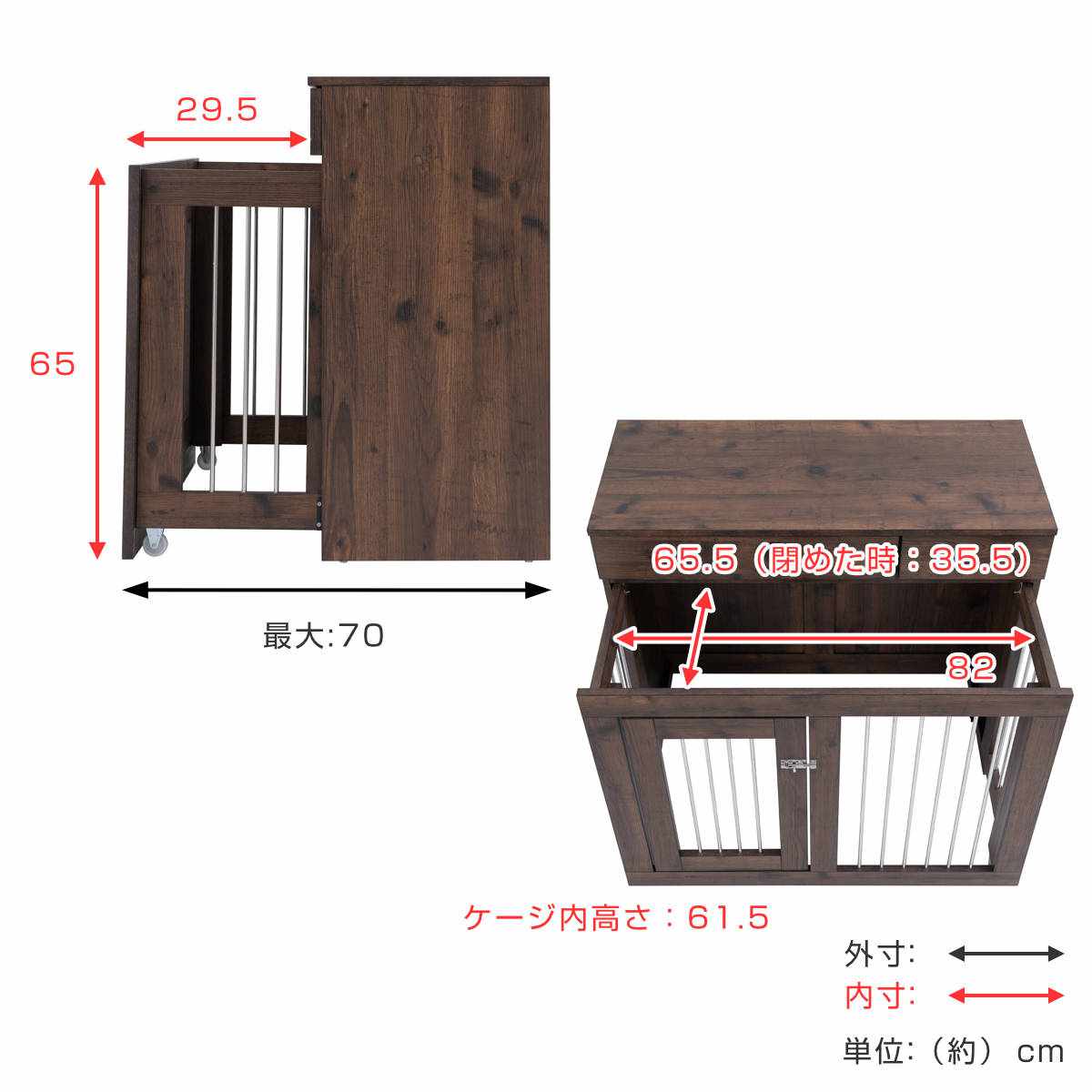 ●ケージは使いたい時だけ広げられ、使わないときは収納キャビネットとしてお使いいただけます。