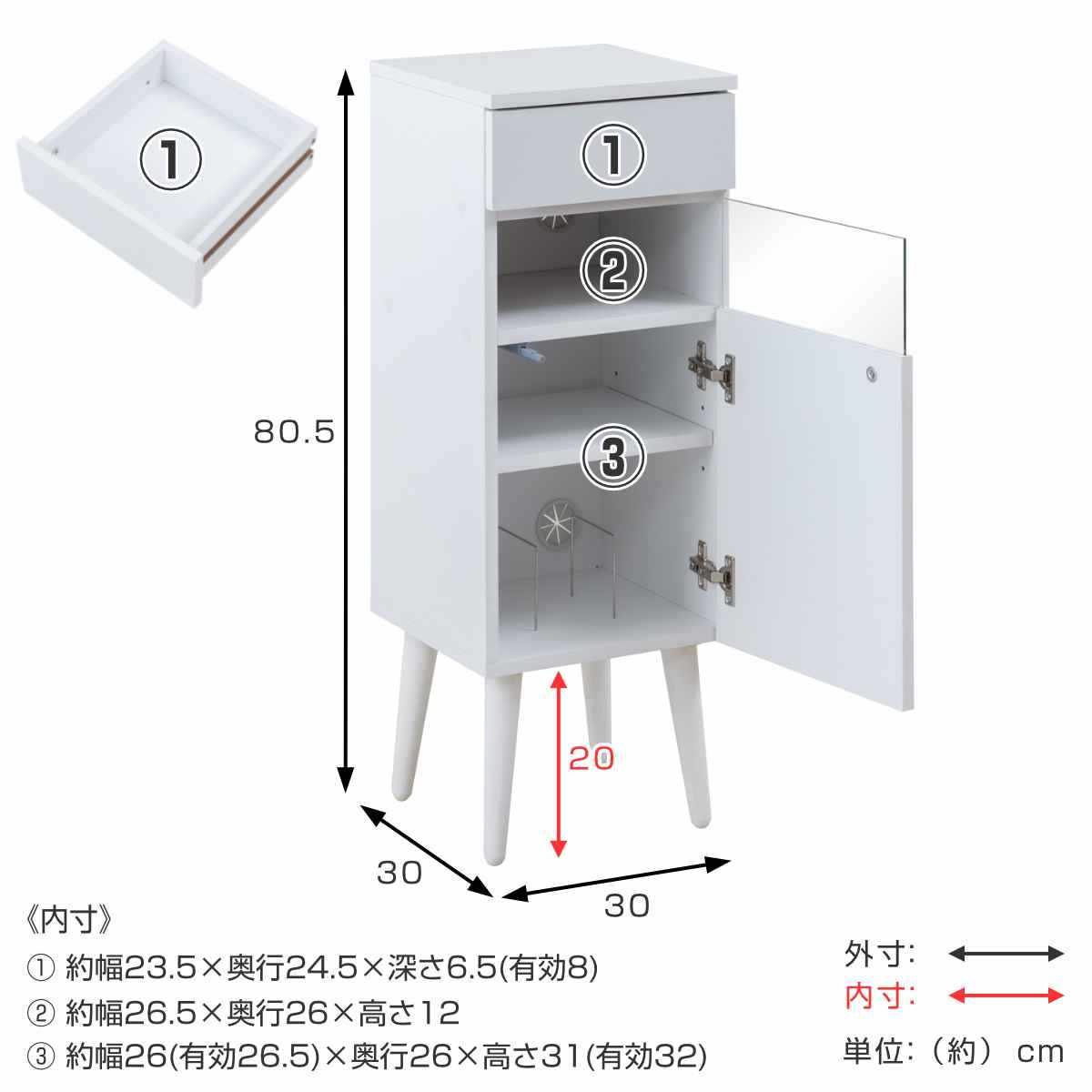 | サイズ | 約 幅30×奥行30×高さ80.5(cm) |