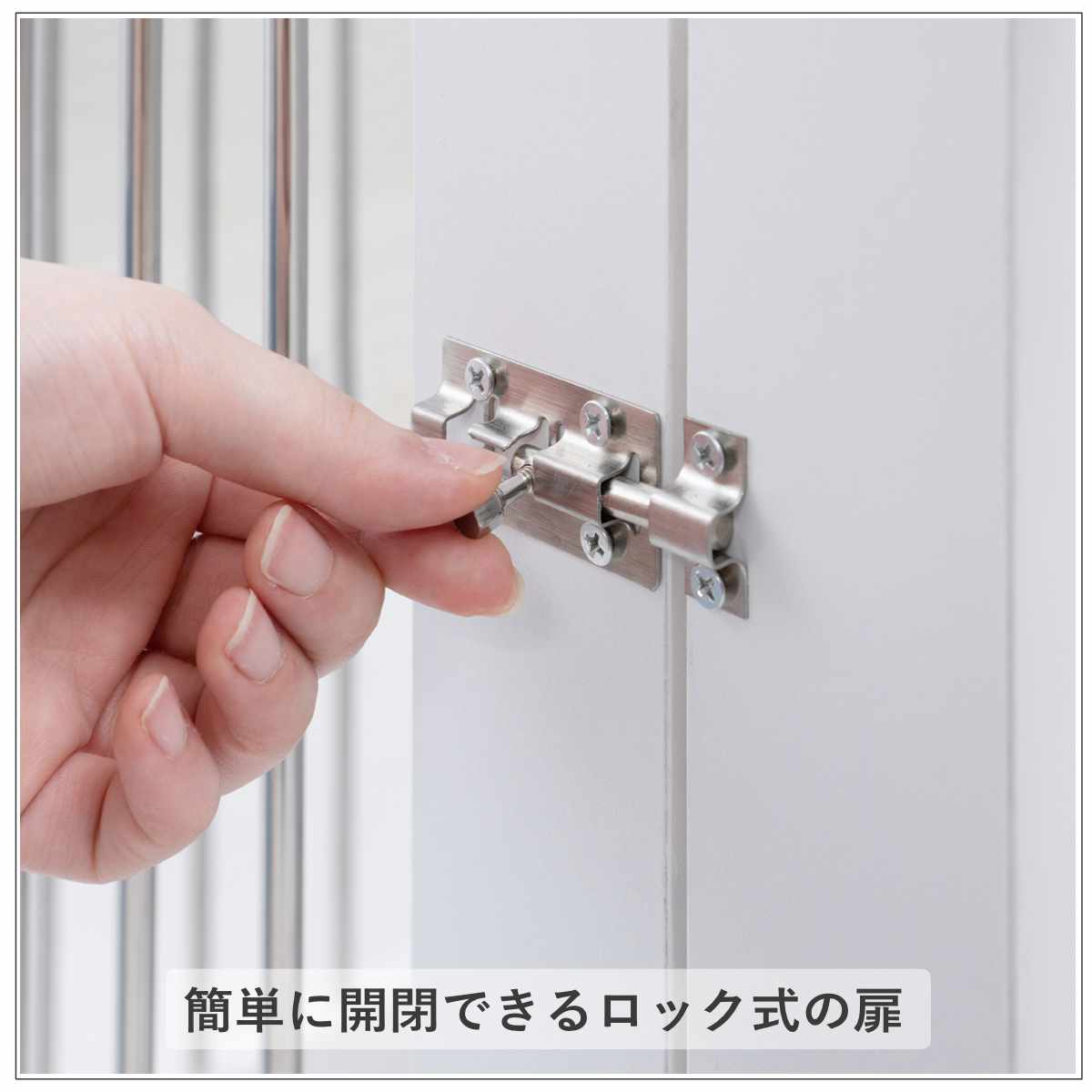 扉にはワンタッチロックを採用しています。飼い主さんは簡単に開けられますが、ワンちゃんには開けられない安心仕様です。