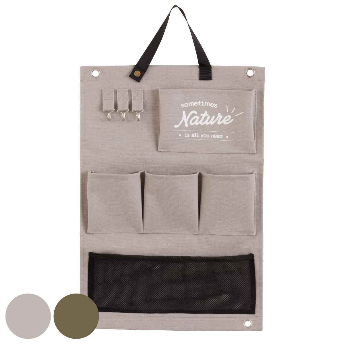 小物をすっきり収納できるウォールポケットカジュアルテイストが魅力のナチュレルシリーズ ウォールポケットです。壁に掛けるだけで収納を増やすことができて、すぐ使うものや郵便物などをまとめて収納できます。生地にはPEコーティング加工が施されており、汚れてもふき取りやすいです。