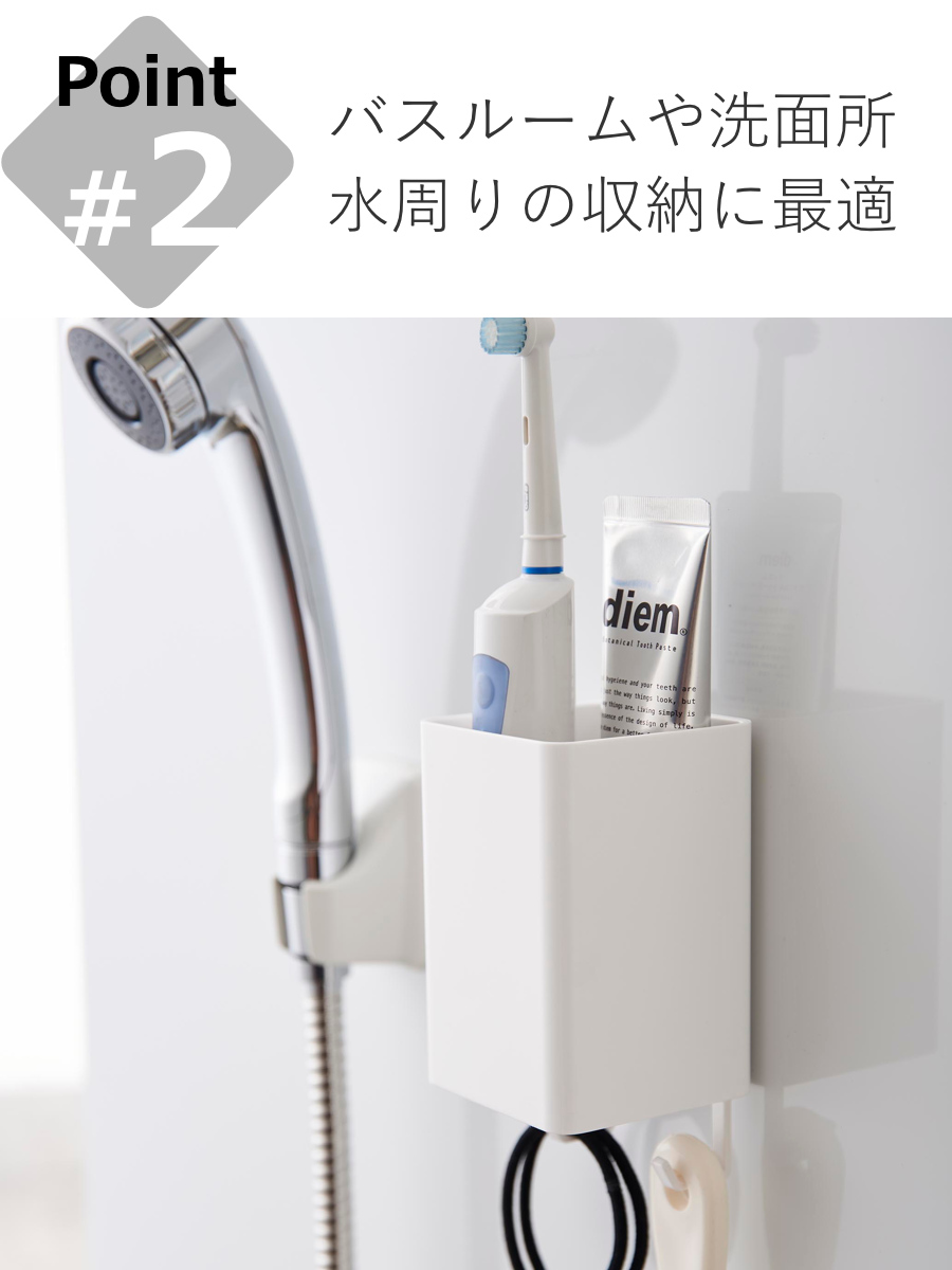| サイズ | 約 幅7×奥行7.5×高さ10.5(cm) フィルムフック接着面:約幅6×高さ6cm(1つあたり) 内寸:約幅6.5×奥行6.5×高さ10.2cm(仕切り板の溝含まず) |