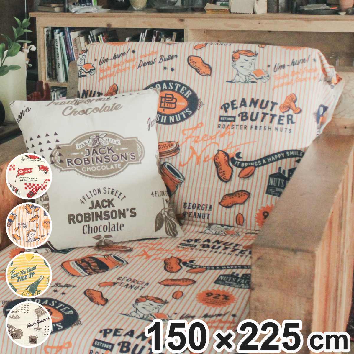 アメリカンレトロなマルチカバー 150×225cmどこか懐かしいポップでかわいいデザインのマルチカバーです。ベッドやソファーに掛けるだけでインテリアのアクセントになり、気軽にお部屋のイメージチェンジができます。