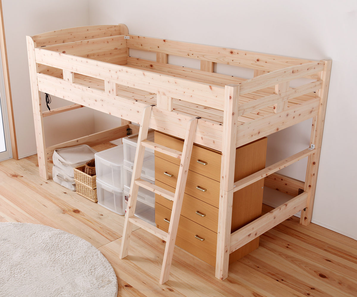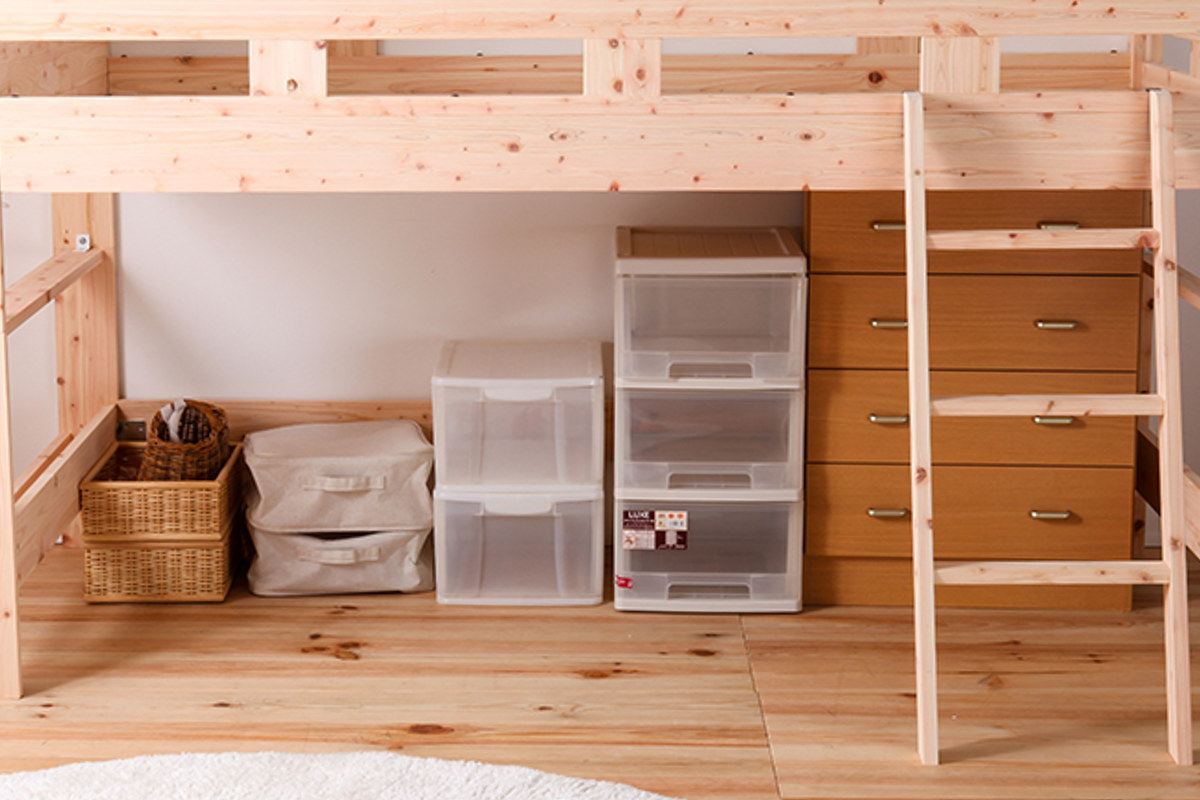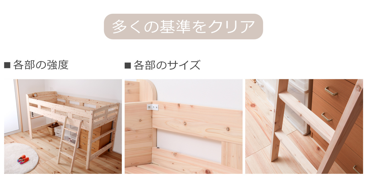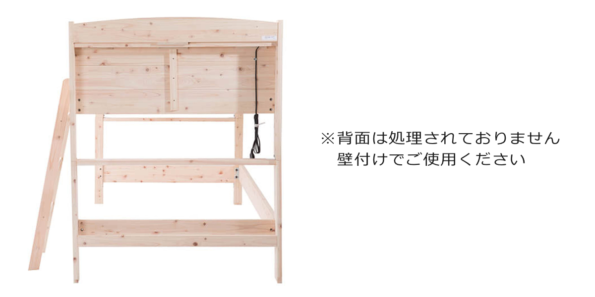 | 注意事項 | 対象年齢:下段4歳以上、上段11歳以上 ※背面は処理されておりませんので壁付けでご使用ください ※天然木を使用している為、1点1点色合いや風合いが異なります |