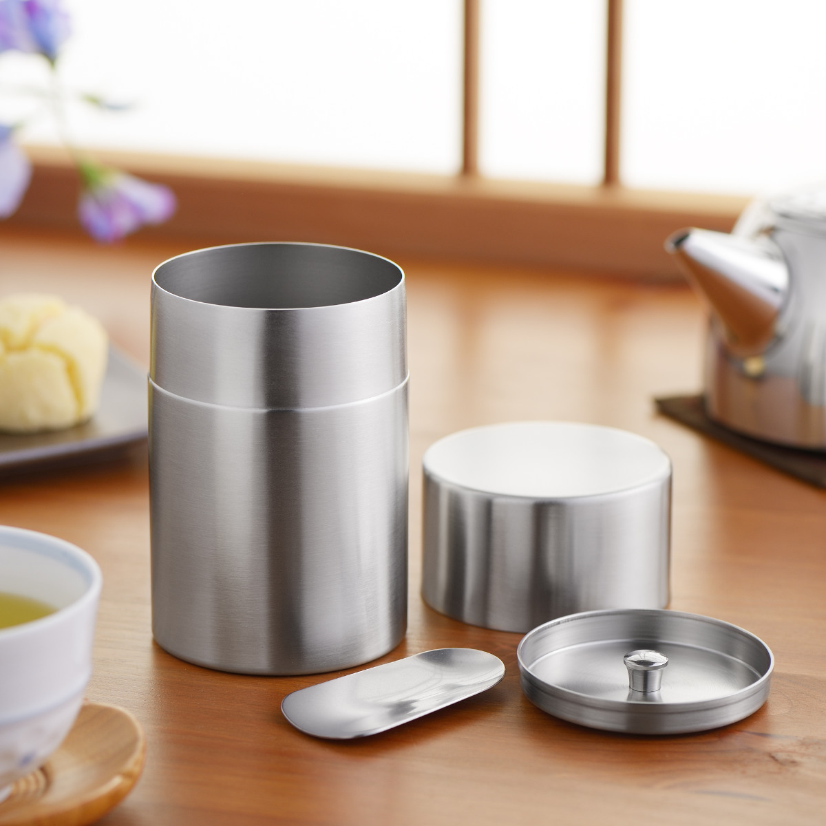 お手入れがしやすく耐久性に優れたオールステンレス製です。遮光性が高く、におい移りや湿気にも強く、茶葉の香りや味を長く保ちます。