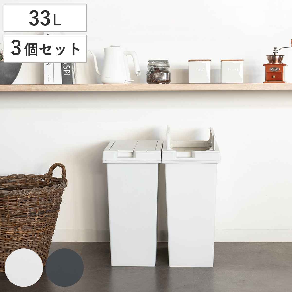 手動でふたがサッと簡単に開けられるゴミ箱 33L 同色3個セット