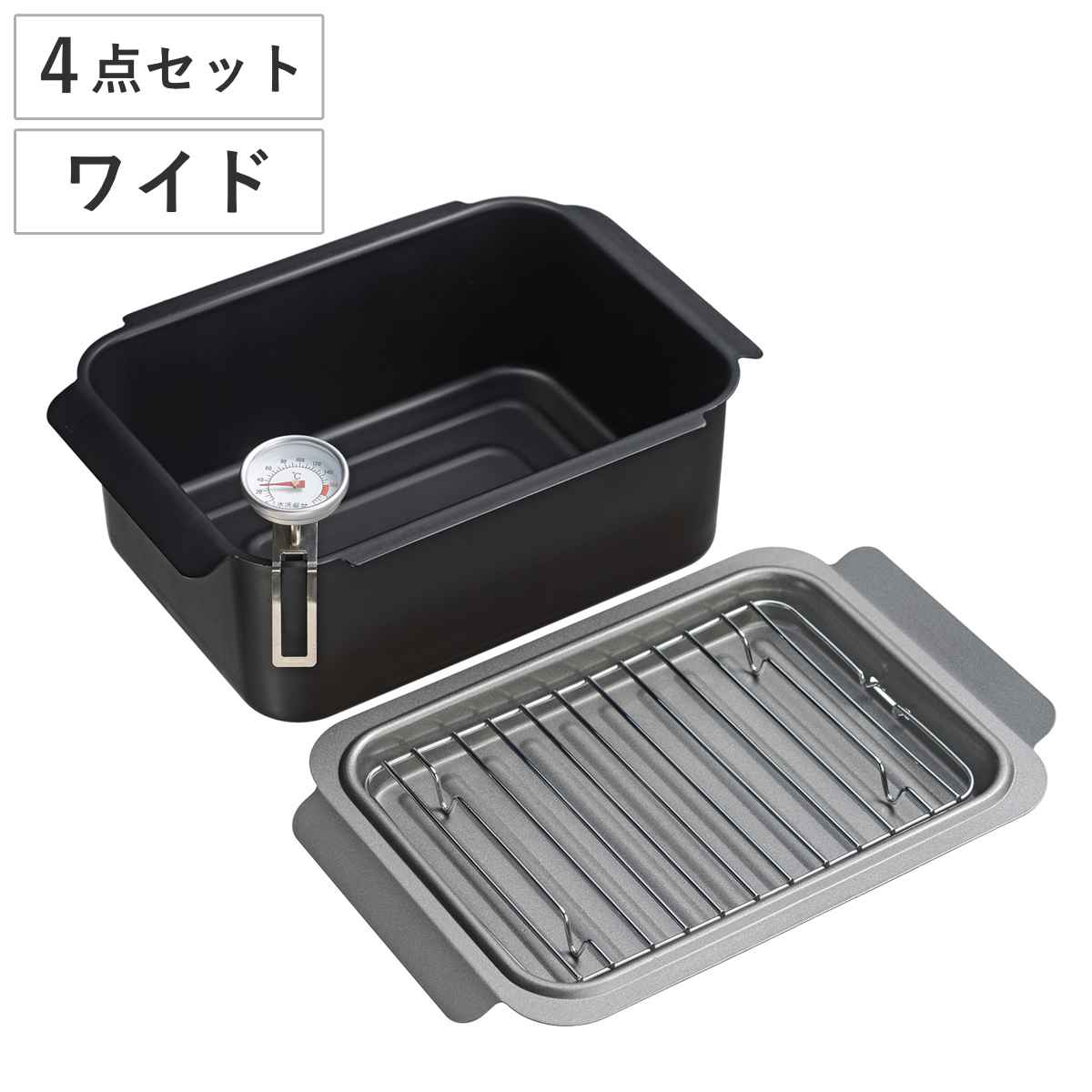 取り外せる温度計付き温度計が付いているので温度管理がしやすく、揚げ物に最適な温度を一定に保てます。
