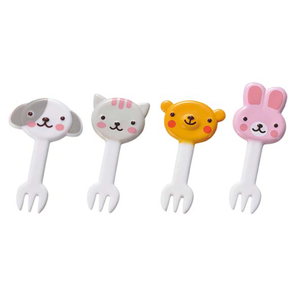 お弁当を簡単に可愛く楽しくできる動物たちのフォークピック●持ち手にどうぶつたちの顔がついている、かわいいフォークピックです。