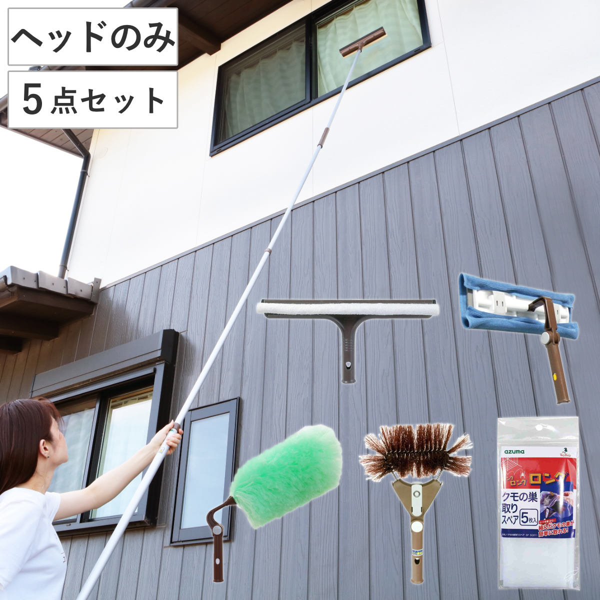 高所用清掃道具 ヘッド4点+スペアシートセット通常の掃除用品では手の届かない、高所を清掃する時に便利なセットです。別売りの「アルミ伸縮柄・つなぎ柄セットLL554」に取り付けて、カーテンレールや梁、窓や外壁など室内外のあらゆる場面で活躍します。