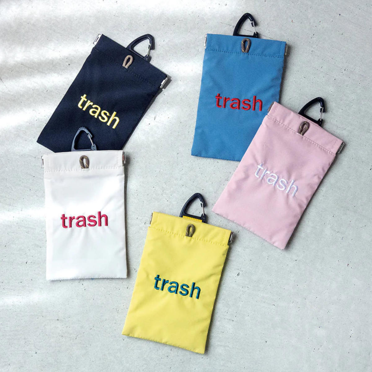 お洒落な「trash」の刺繍入りのPOY●外出先のちょっとしたゴミを入れることができる携帯ゴミ箱です。