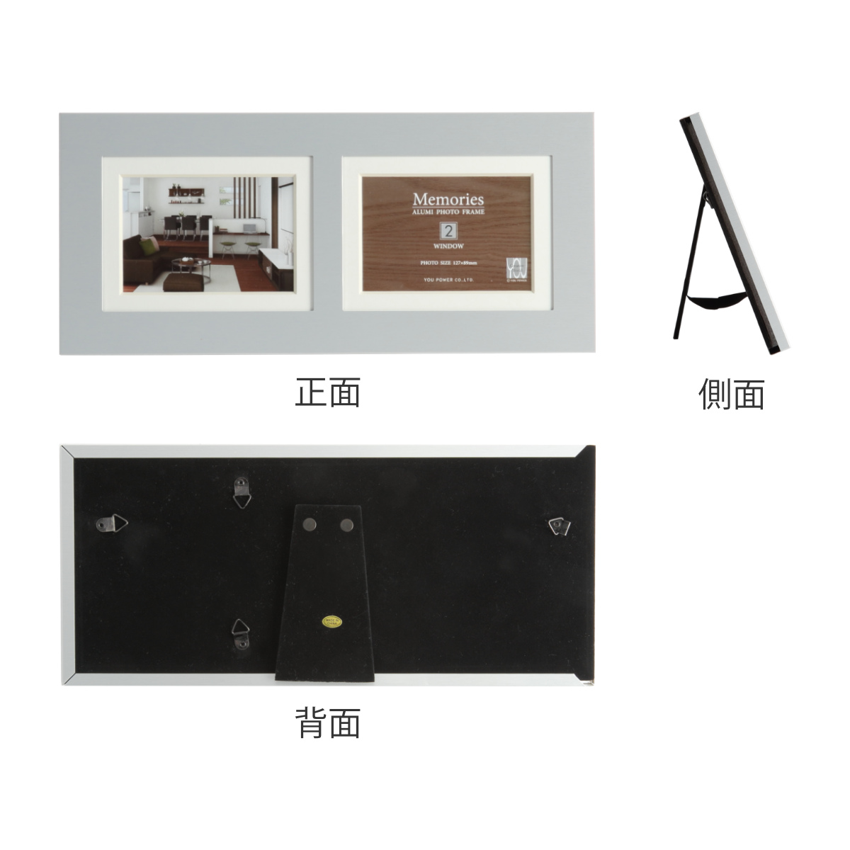 フォトフレーム メモリーズ アルミ 2ウィンドー L判 ( フォトスタンド 写真立て 写真たて 壁掛け 置き型 スタンド 複数枚 多窓 多面 2窓 2枚収納 )