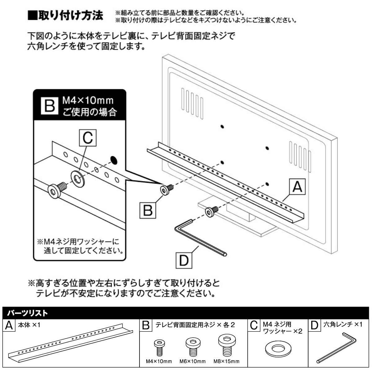 付属品:テレビ背面固定用ネジ(M4×10mm・M6×10mm・M8×15mm)×各2