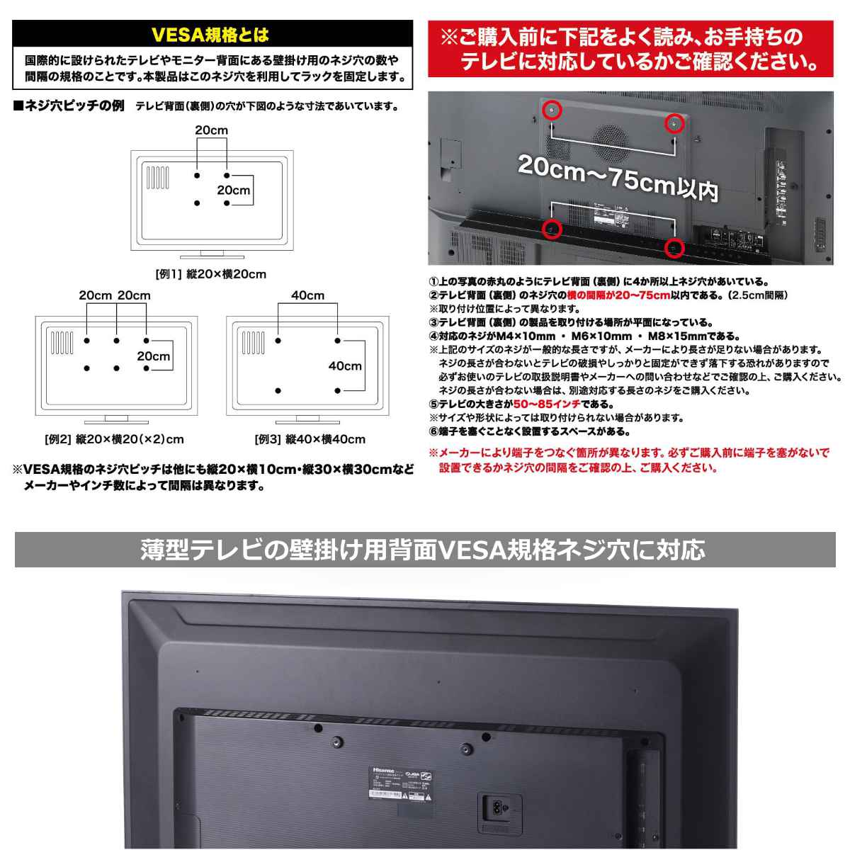 対応サイズ/テレビ背面のネジ穴ピッチ:横20〜75cm(2.5cm間隔)