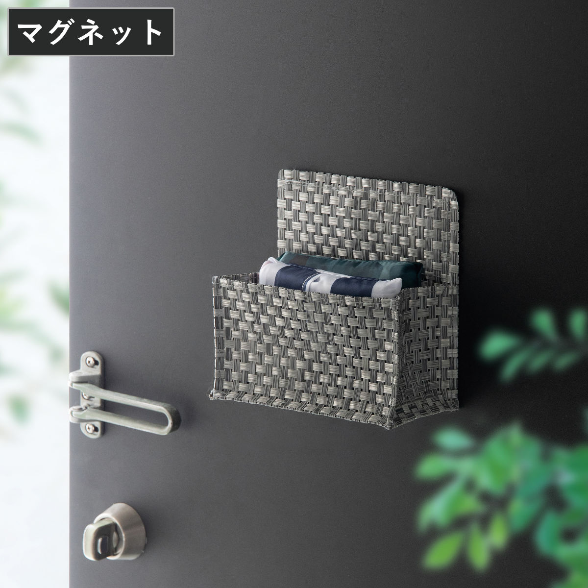 マグネットでドアにくっつけるマルチボックスエコバッグなどの小物を収納するのに便利なマグネット式マルチボックスです。磁石でくっつくため、玄関の整理整頓を簡単にサポートします。さらに、キッチンやオフィスなどでも活用できます。
