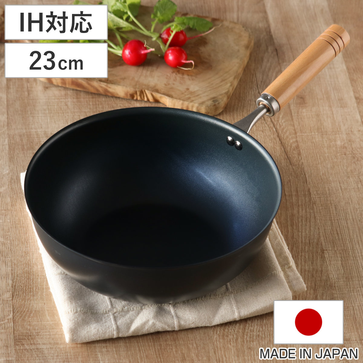 マルチに使えるいため鍋 23cm炒め物や焼き調理におすすめのいため鍋です。ちょこっと使えて小回りの効くサイズ感がとても重宝します。深型で食材が溢れにくく、中華鍋のようにお使いいただけます。また、湯で調理にも活用でき、時短で手早く調理できます。