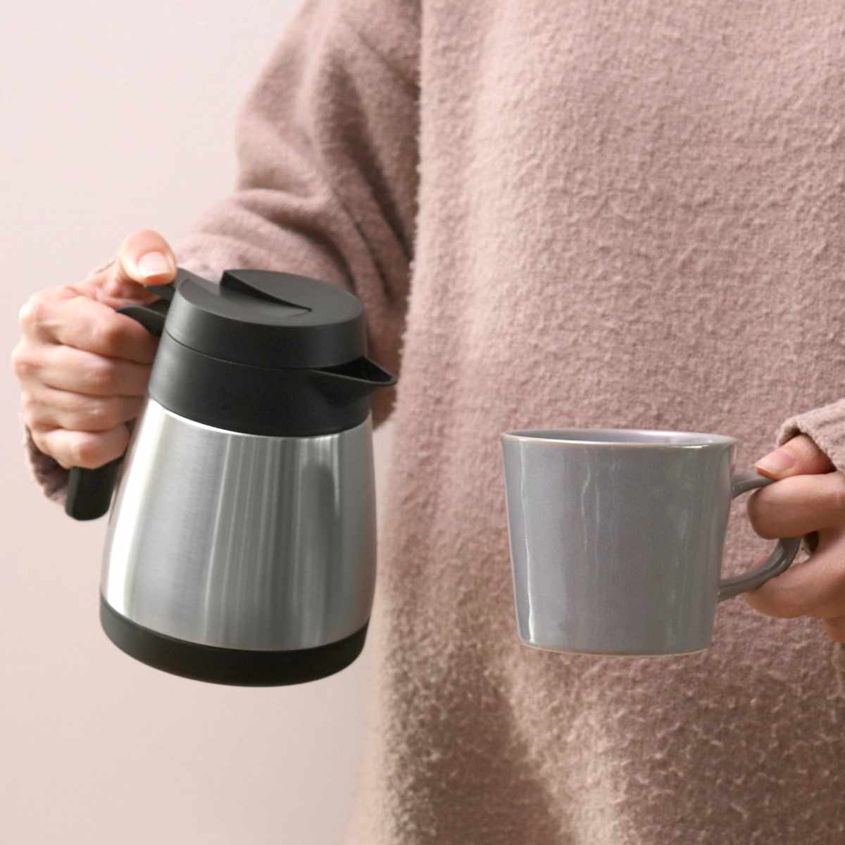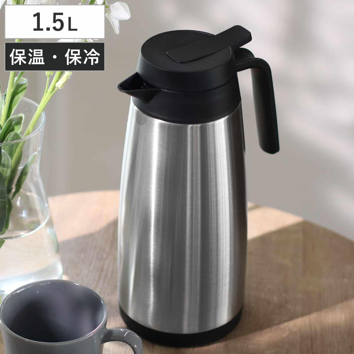 | 材質 | 本体内側:18-8ステンレス鋼 本体外側:ステンレス鋼 口がね・ハンドル・ふた栓・開閉レバー:ポリプロピレン パッキン:シリコーンゴム |