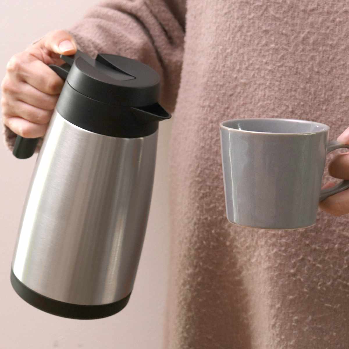 | 材質 | 本体内側:18-8ステンレス鋼 本体外側:ステンレス鋼 口がね・ハンドル・ふた栓・開閉レバー:ポリプロピレン パッキン:シリコーンゴム |