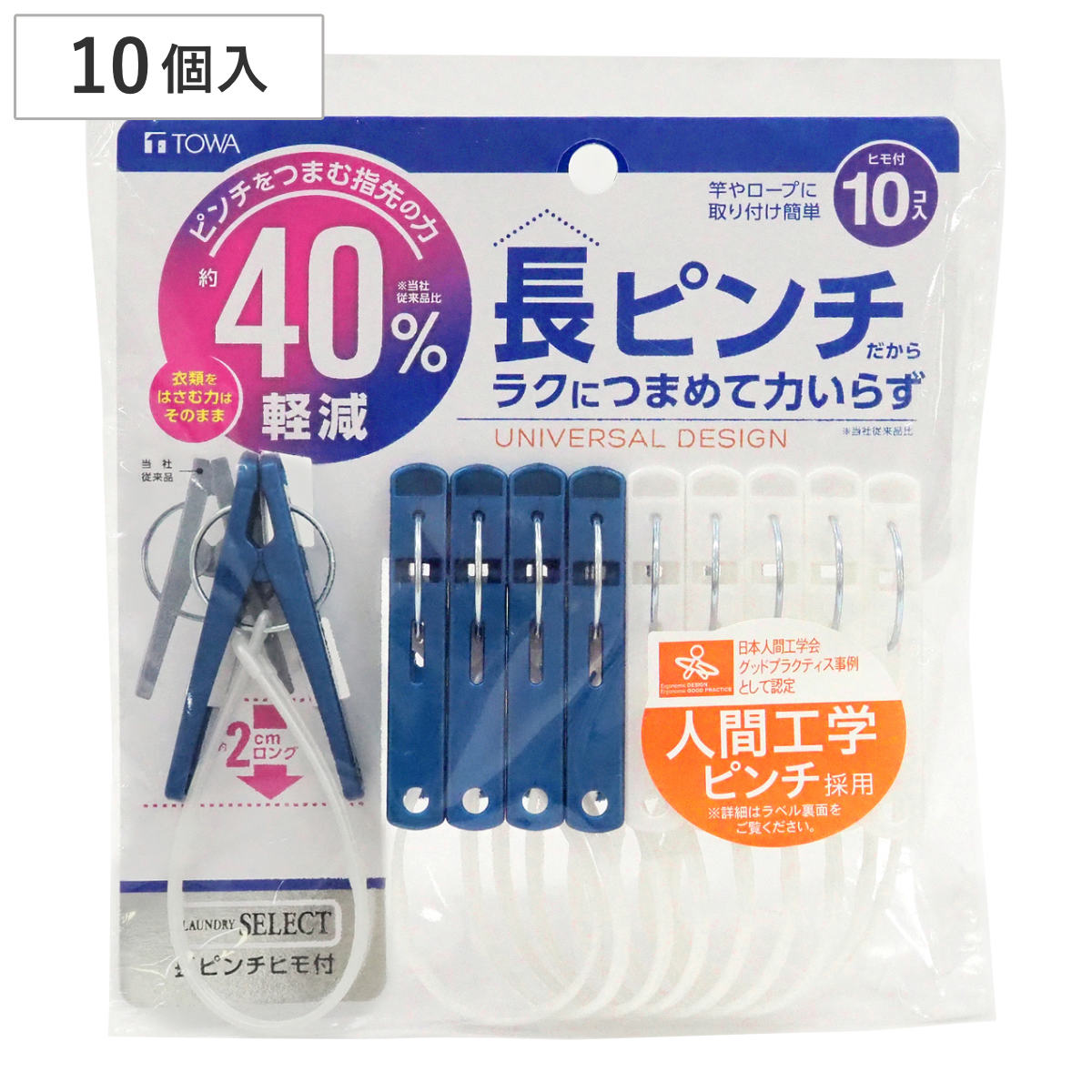 洗濯バサミ ピンチ 長ひもピンチ 10個入 ( 洗濯 洗濯ばさみ クリップ 紐付 )