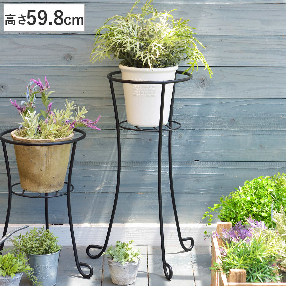 鉢に高さを出してお庭を美しく演出●スチールを使用した頑丈でおしゃれなフラワースタンドです。