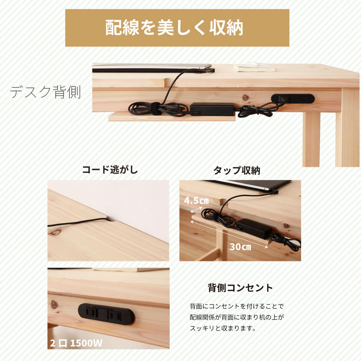 | 備考 | ホルムアルデヒド放散区分:F☆☆☆☆ 2口コンセント付き(1500w) |