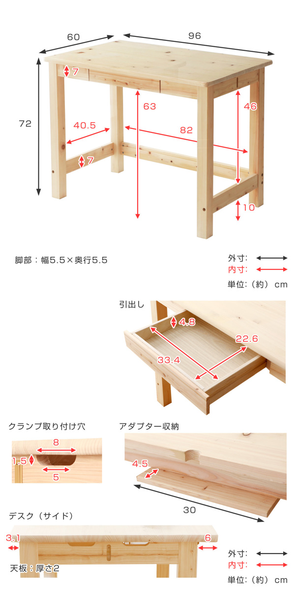 | 材質 | 天然木ひのき、引出し内部一部合板等 |