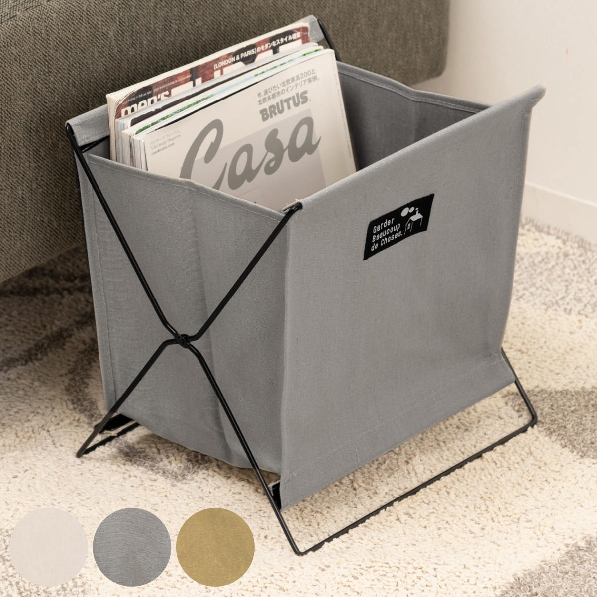 幅広いテイストのインテリアに馴染む、シンプルな色とデザインのマガジンラックです。散らかりやすい雑誌や小物類をさっと放り込めば、お部屋がスッキリ片付きます。