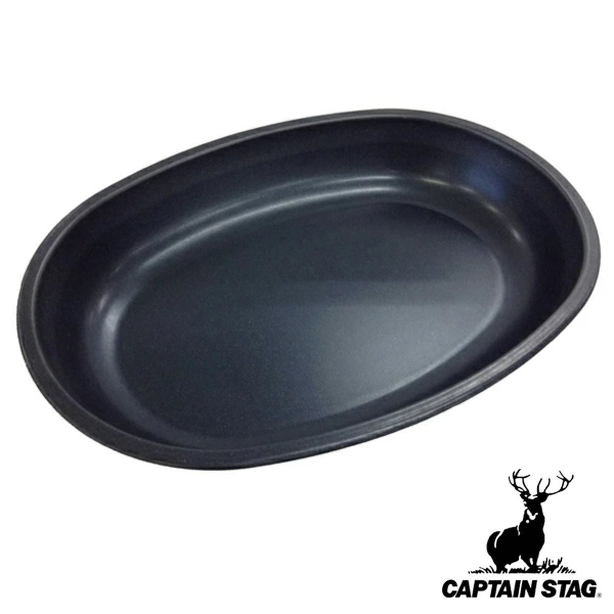 アウトドア用品 ブルーブラックコート 小判型 カレー皿 ふっ素樹脂加工 ( キャプテンスタッグ キャンプ用品 食器 )